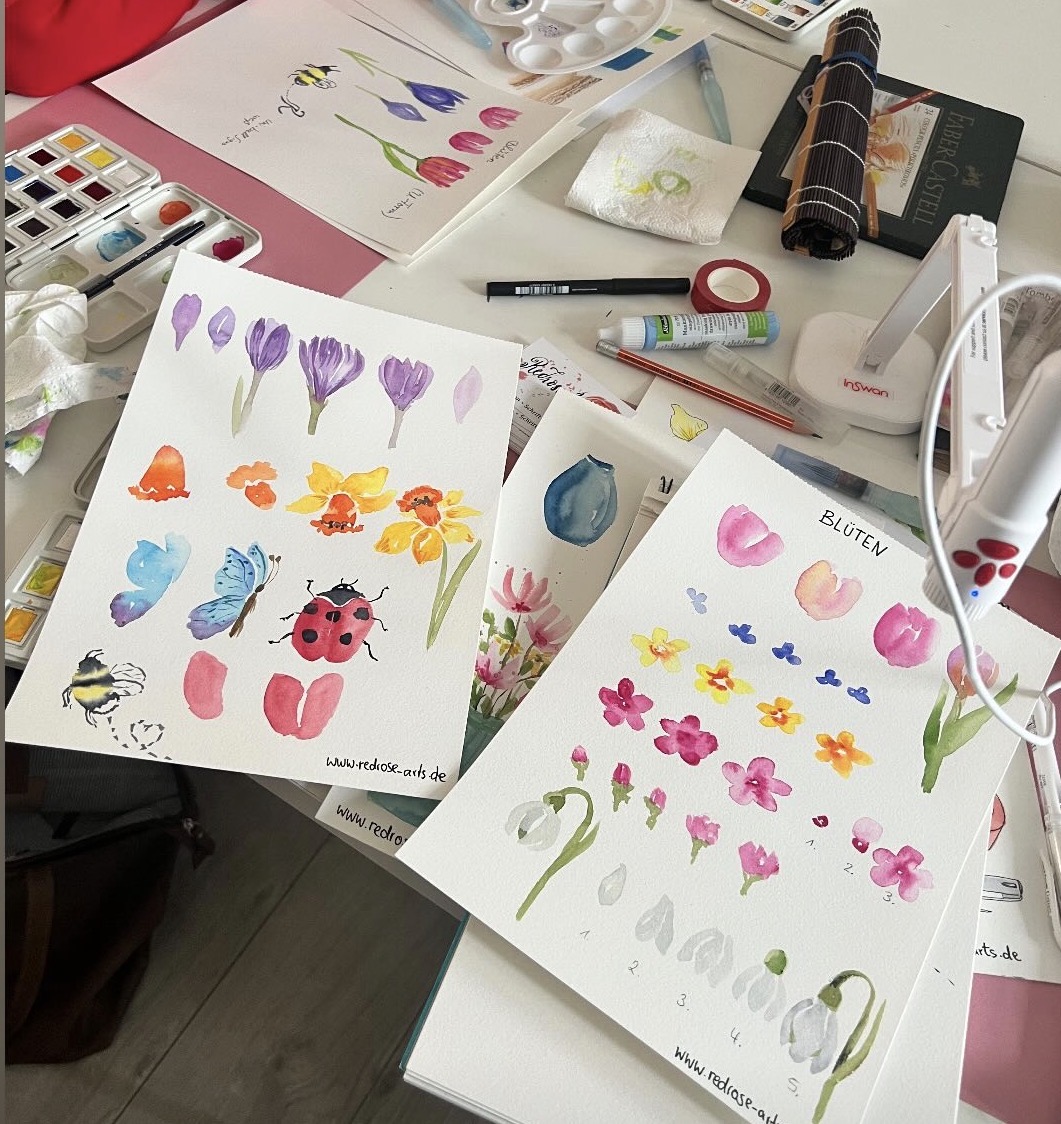 Anne wollte vor einigen Jahren in zunehmend digitaler Zeit, Papier und Stifte nicht missen. Sie begann sich mit dem Thema der Schriftgestaltung zu beschäftigen und war in den Anfängen des Handlettering-Trends dabei. Auch das Zeichnen darf bei ihr nicht zu kurz kommen. Neben Bleistift und Fineliner, fanden auch Aquarellfarben Einzug in ihren Schaffensbereich. Wer mehr erfahren möchte, schaue auf ihrer Homepage redrose-arts.de weiteres gerne nach.