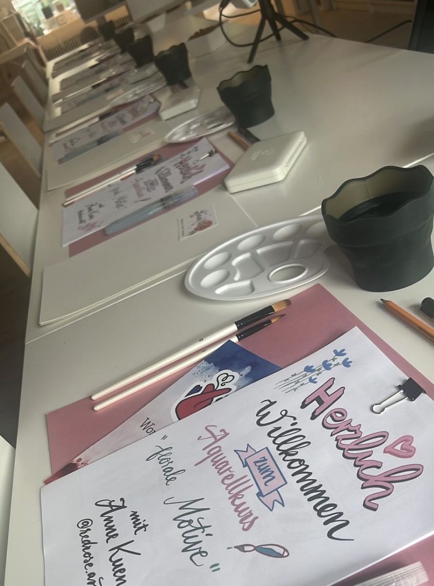 Mit Aquarellfarben und Wassertankpinsel lernt ihr florale Motive darzustellen. Einblicke in Grundlagen und Techniken werden vermittelt. Taucht mit Anne ein, in die kreative Welt der Farben.