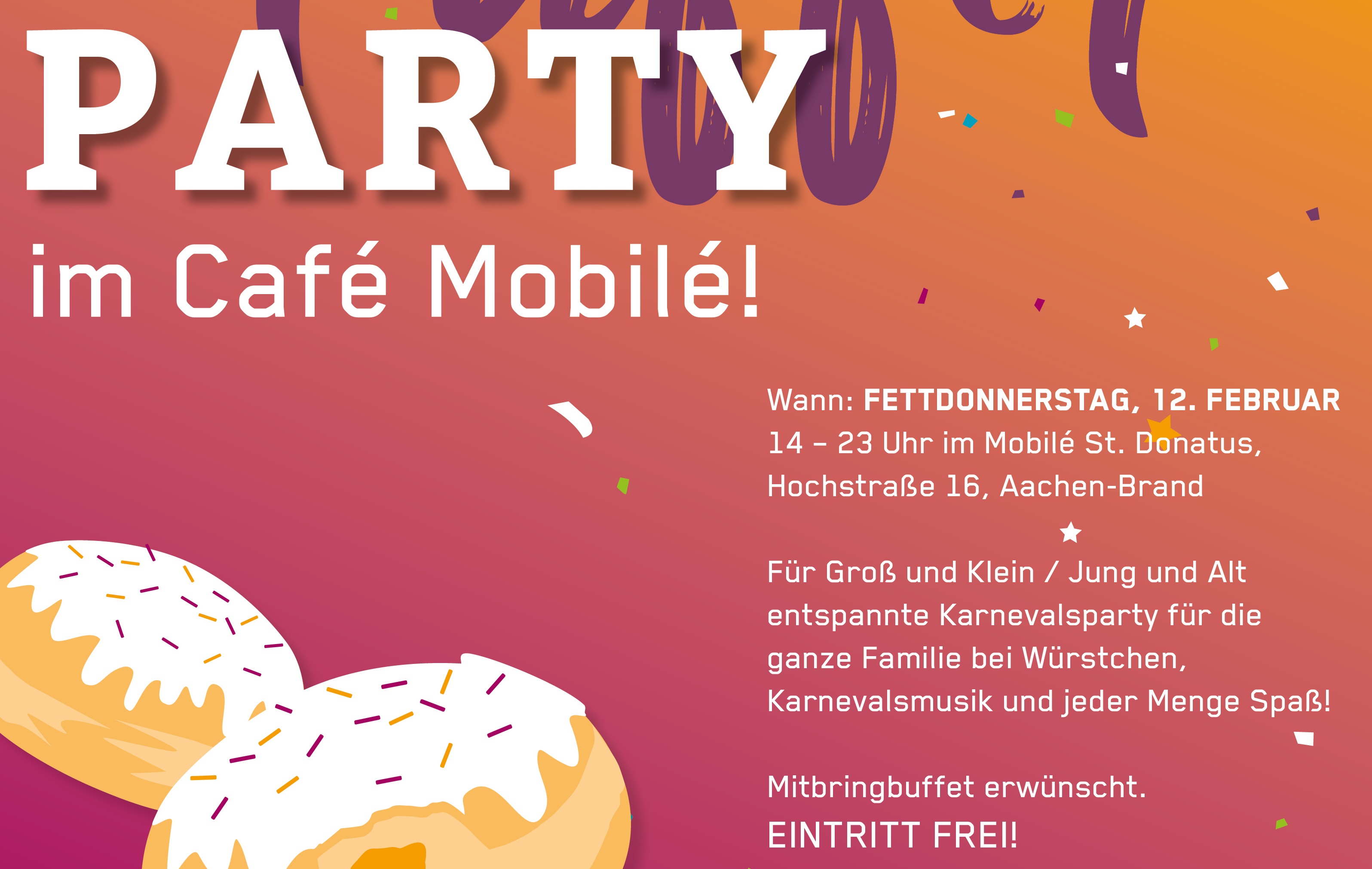 Wir laden alle kostümierten Jecken jeden Alters zu Festäng und Party ein!